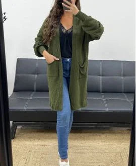 Gilet maille femme mi-long avec 2 poches - Confort et praticité au quotidien !